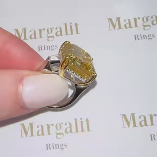 9.52 Carat, Fancy Yellow, Asscher Cut Cocktail Ring