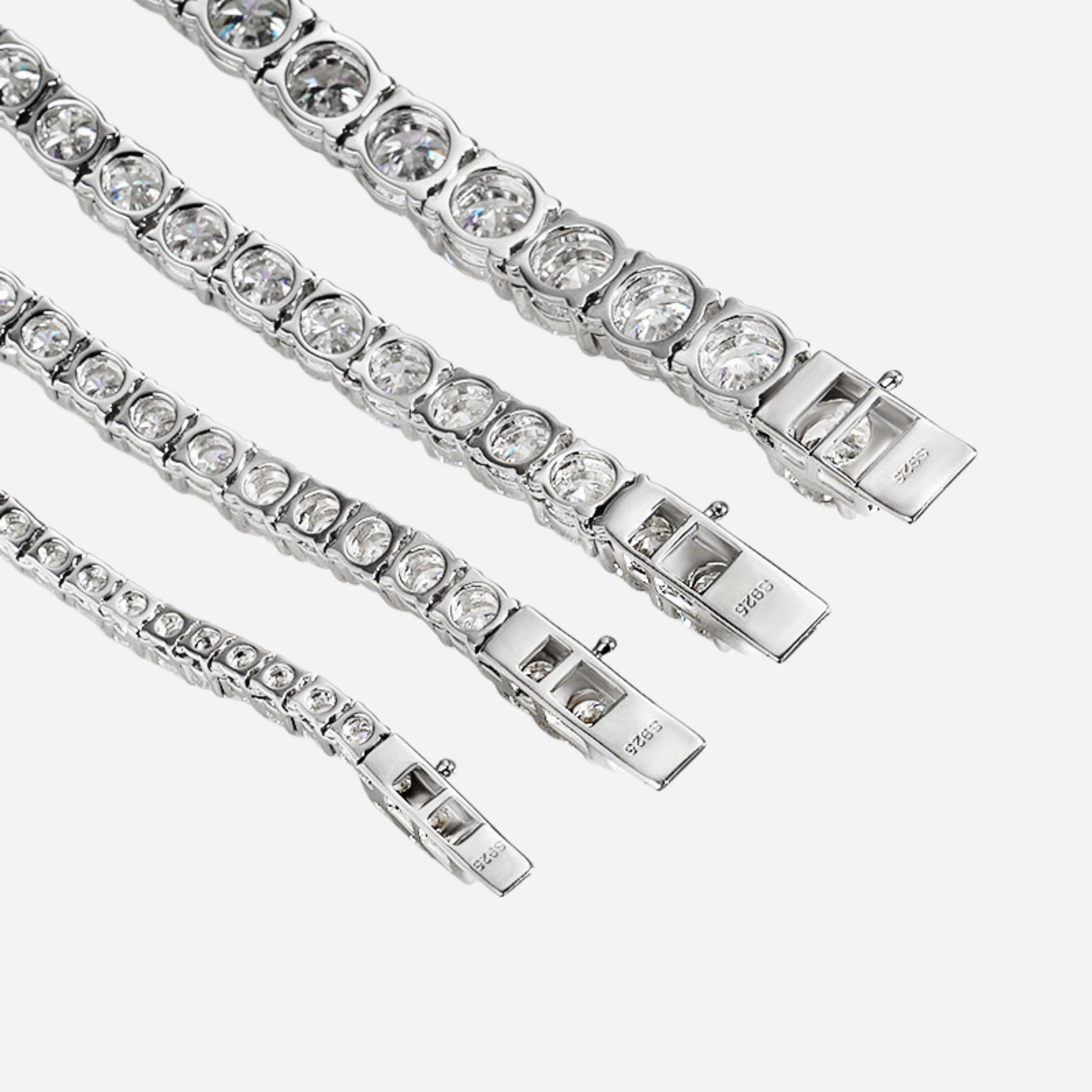 A modern icon of elegance, our moissanite tennis necklace captures light with every movement, offering effortless glamour from day to night. Designed for the woman who moves seamlessly between everyday sophistication and evening allure, it is the ultimate statement in timeless luxury.