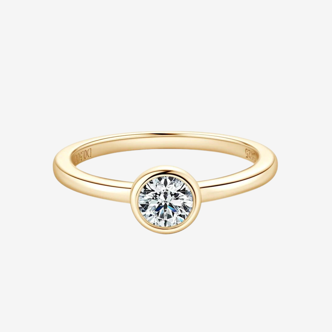 Celebrate timeless elegance with our 0.5 Carat Round Bezel Set Engagement Ring in radiant yellow gold. This refined, minimalist ring features a brilliant round-cut diamond simulant, bezel-set to create a sleek and modern silhouette.